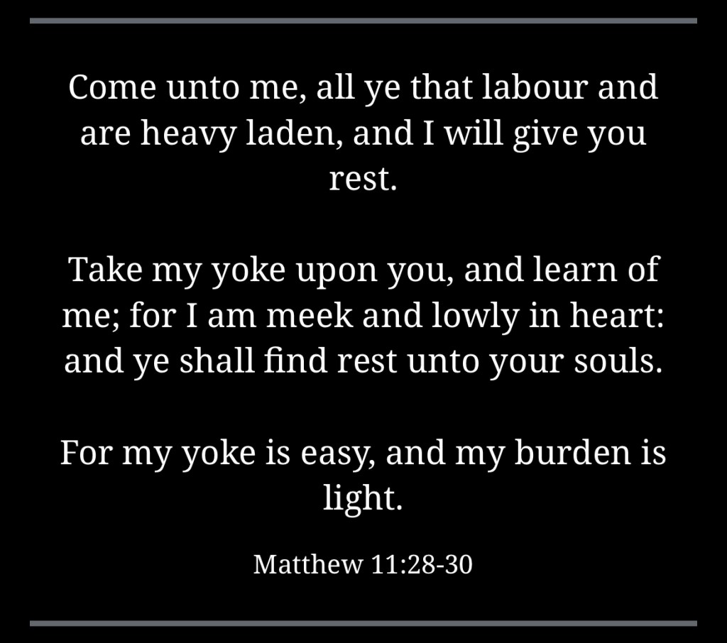 Come unto me, all ye that labour and are heavy laden, and I will give you rest.